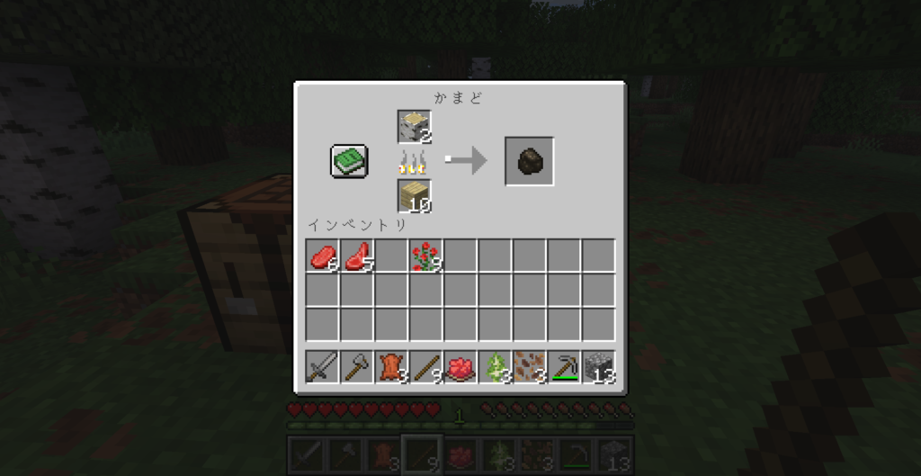 石を探し、かまどを作ります。